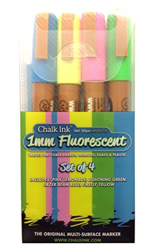 Chalk Ink Fluorescent Wet Wipe Markers, 1mm, 4-Pack