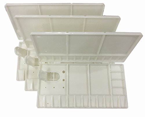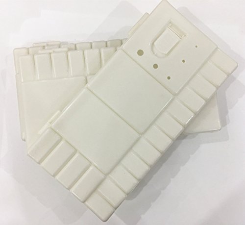 -. Feature : Package includes: 3 Pieces folding palette.Each weight: approx. 160 g / Folding paint trays size: 26 x 13.5 x 2.1 cm/ 10.24 x 5.31 x 0.83 inches (fold size), 26 x 27 x 1.1 cm/ 10.24 x 10.62 x 0.41 inches (unfold size) / 33 Compartments: 28 small wells and 5 large mixing areas in pallet / Thumbhole ensures use and control easily and 5 sizes holes to hold painting brushes, box cover lid will avoid pigments drying. / Great for artists, painters, crafts, art students