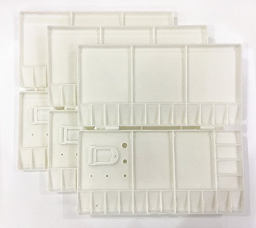 -. Title : 3 Pieces Watercolor Folding Paint Trays Watercolor Oil Plastic Palettes with 33 Compartments Mixing Grids , Thumbhole and Brush Holders,White Plastic Oil Paint Trays Box Cover
