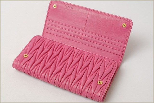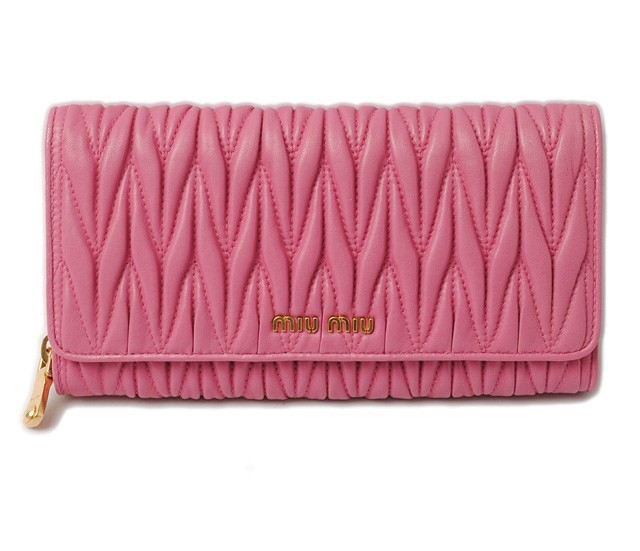 ミュウミュウ 財布miumiu 長財布 5M1365 MATELASSE'LUX/マテラッセ FUXIA/フクシアミュウミュウより、ピンクカラーの愛らしい長財布です。大人気のマテラッセラインがゴージャスな印象に!独特のシワ加工を施したレザーで立体感を持たせ、ふんわり感のある触り心地が女性に人気です。とっても機能性に優れたお財布で、ポケットがたくさんあり、充実の収納です。財布の中身が多くなりがちな方にもオススメ!商品名 ミュウミュウ 財布miumiu 長財布 5M1365 MATELASSE'LUX/マテラッセ FUXIA/フクシア 商品番号 miu-16-082 ライン サイズ 約:W19.5×H10.5×D3 (cm) 素材 MATELASSE'LUX カラー 本体:FUXIA/フクシア金具:ゴールド 参考定価 - 付属品 ギャランティカード、箱 製造番号 特徴 【 外側 】○スナップ式開閉部【 内側 】○ラウンドファスナー式開閉○小銭入れ○カードポケット×14○オープンポケット×3○札入れ/コンパートメント×2 -商品状態-程度 :ランクNS○アウトレット品、未使用品。○未使用品となっておりますが、若干程度の、経年劣化など予めご了承くださいませ。○海外直営アウトレット店よりの輸入のため、輸送の途中、箱に、つぶれ・変形・破損がある場合がございます。何卒、ご理解・ご了承いただけます様お願いいたします。○素材の特性上、ヴィンテージ感を出すため、シワ感・クラッキング(ひび加工)がございます。不良品ではございませんの、予めご了承くださいませ。