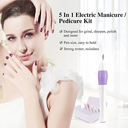 TOUCHBeauty Portable Manicure Pedicure kit Nail Drill Device with 5 attachments Purple AS-0610