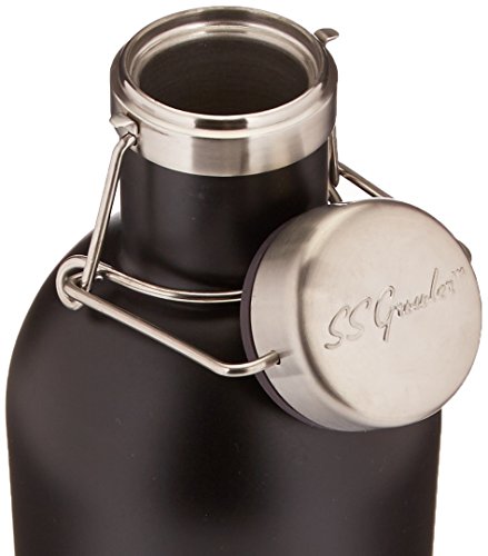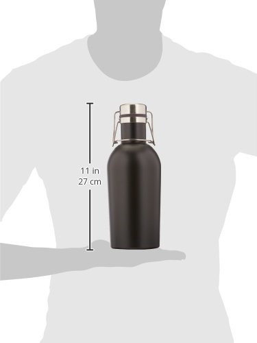 Kegco KC GR32DDW-BL Double Wall Beer Growler, 32 oz, Stainless Steel/Black Finish