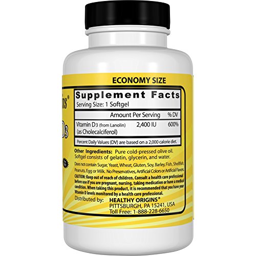-. Binding : Health and Beauty -. Brand : Healthy Origins -. EAN : 0603573153083 -. Feature : Healthy Origins Vitamin D3 - 2400 IU - 360 / Gluten Free / Dairy Free -. IsAdultProduct : 0 -. Label : Healthy Origins -. LegalDisclaimer : Actual product packaging and materials may contain more and different information than what is shown on our website. We recommend that you do not rely solely on the information presented and that you always read labels, warnings, and directions before using or consuming a product. Please see our full disclaimer below. -. Manufacturer : Healthy Origins -. Model : 820811 -. MPN : 411GG -. PackageQuantity : 1 -. PartNumber : 411GG -. ProductGroup : Grocery -. ProductTypeName : HEALTH_PERSONAL_CARE -. Publisher : Healthy Origins -. Size : 360 SGEL -. Studio : Healthy Origins -. Title : HEALTHY ORIGINS VITAMIN D3 GELS,2400IU, 360 SGEL -. UPC : 603573153083