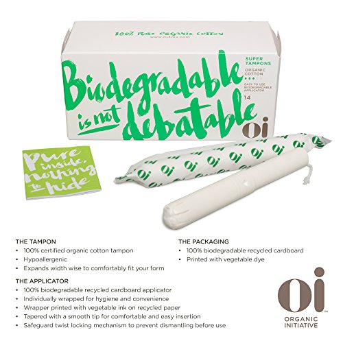 If you prefer tampons to pads, or are planning sports, swimming or any other activities where a tampon is required then the tampon range from Oi is the perfect choice. Oi Tampons with Biodegradable Applicator are designed in a range of convenient absorbencies; Regular, Super and Super Plus.