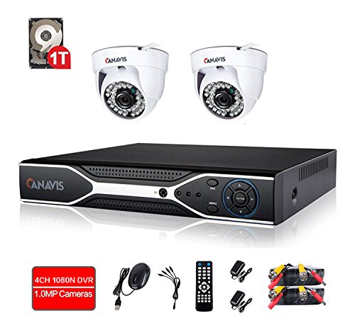 720P Wired Home Security Camera System 4 Channel DVR Video Surveillance System 2 × 1.0MP Indoor CCTV Dome Camera with Night Vision 1TB Hard Drive Motion Detection