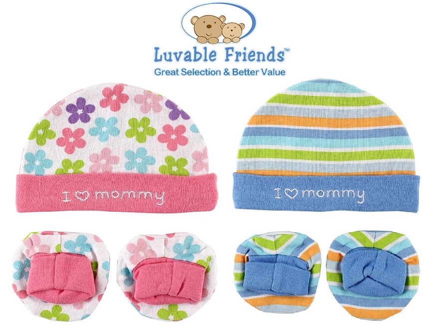Our premium Luvable Friends layette collection of unique baby clothing and baby care products features 100% combed cotton interlock for the softest touch on your baby's gentle skin. Our cap and booties will keep your baby warm and cozy. A woven Baby patch and simple stripe allow you to mix and match the rest of your baby's outfit with ease.