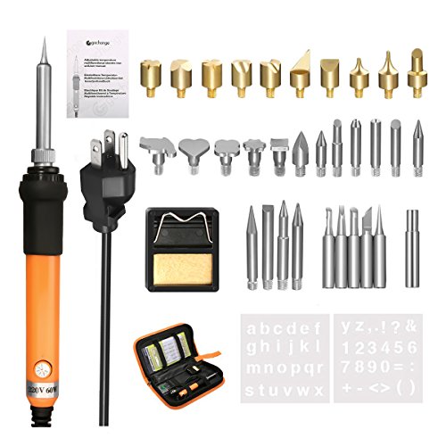 GOCHANGE 37Pcs Wood Burning & Soldering Iron Kit, Incl Adjustable Temperature Soldering iron pen, 15 x Wood Burning Tips, 16 x Soldering Tips