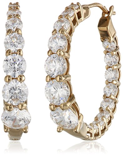 Plated sterling silver hoop earrings featuring graduated Swarovski Zirconia stones in prong settings on inner and outer curves Hinge with notched-post backings Imported Brand : Amazon Collection Item model num : E1926607_150_000 MPN(PartNumber) : E1926607_150_000