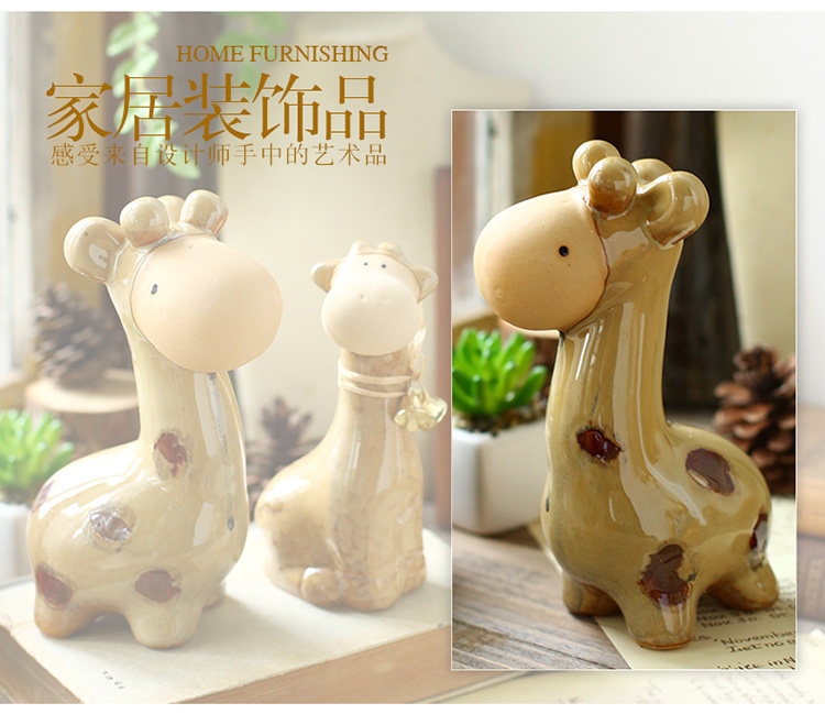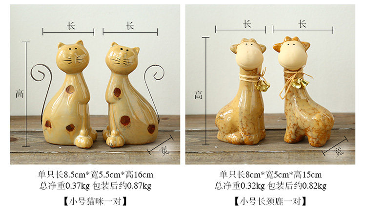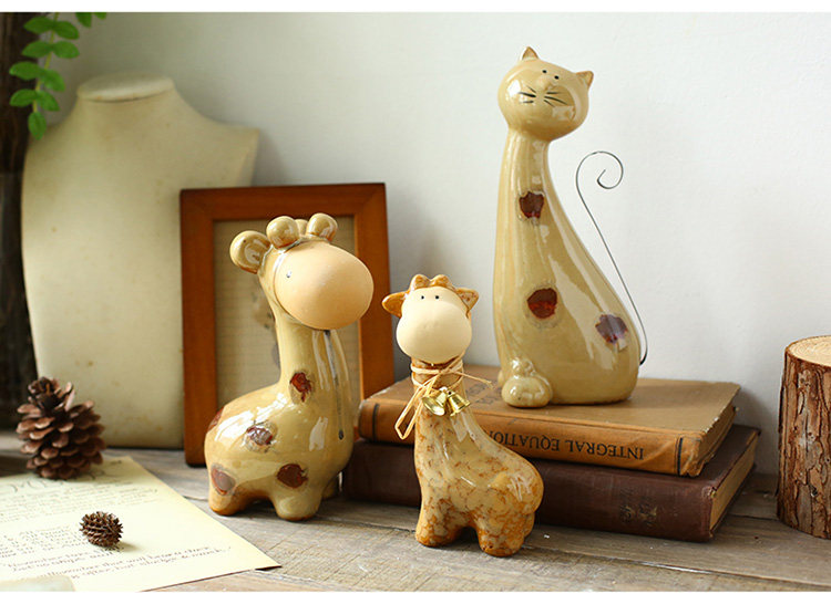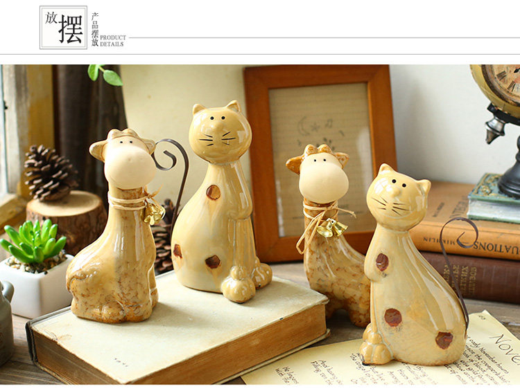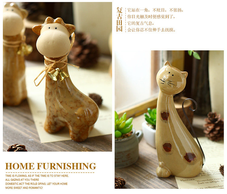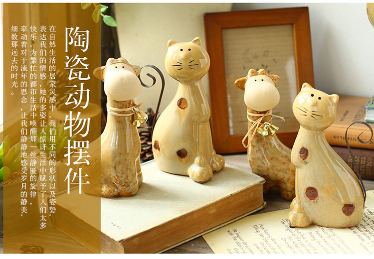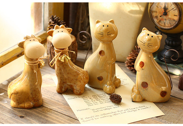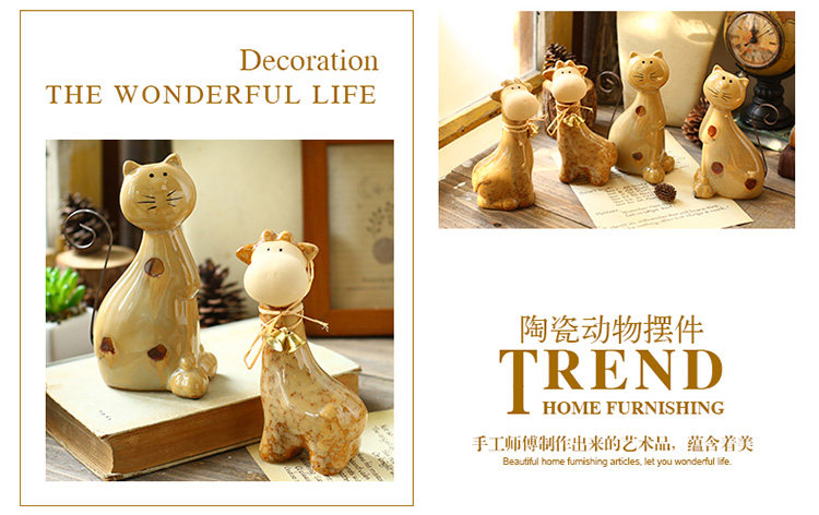 󰄬zakka创意可爱动物桌面陶瓷装饰品摆件少女房间客厅电视柜小摆设