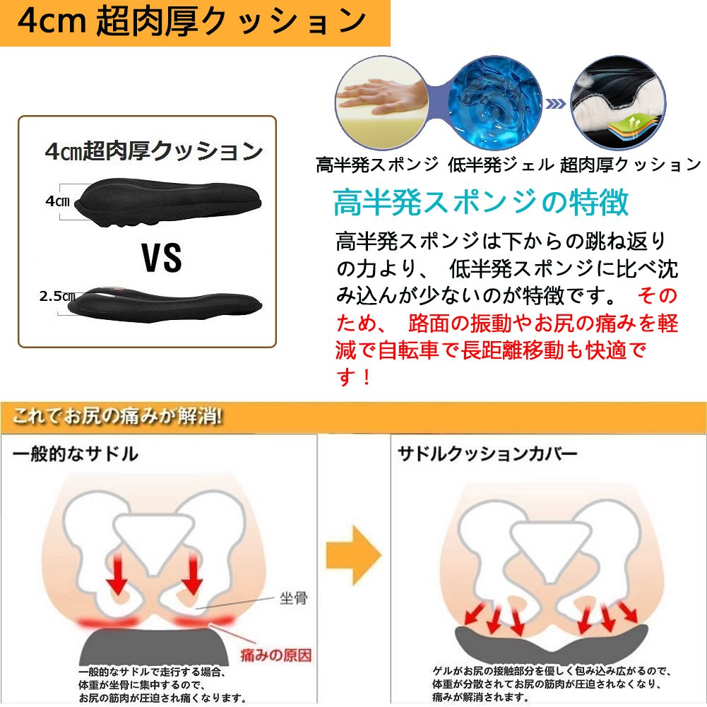 4 cm Ultra wall thickness (high repulsion) Ultra wall thickness Soft vibration suppresses vibration, travels for a long time with a bicycle, reduces the burden of the buttocks, and enables comfortable exercise.