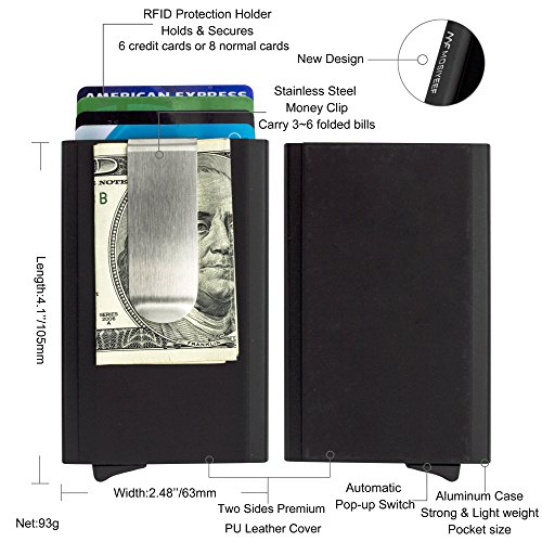-. Feature : RFID BLOCKING WIRELESS THEFT - RFID blocking protection design, keep your P.R.Ivate information and credit card away from thieves' scanning devices, insure your P.R.Ivate property safety. MOSIYEEF slim wallet farthest protects your P.R.Ivacy. / HIGH TEXTURE AND APPEARANCE - Made of premium aviation aluminum materials from top manufacturer and covered with premium imitation carbon fiber on both sides.High strength metal body protect your cards from physical damage and ensures long service life, while high grade imitation carbon fiber enchance the texture and appearance / SIMPLE & EASY TO USE - Push the button on the bottom, the card will pop out automatically.You can easily get the cards in the card holder, simple and elegant.CAPACITY for up to 8 CARDS.With Strong stainless steel Money clip that can easily carry 3~6 folded bills / PERFECT CHOICE - Practical, makes Big Impression when taken out in front of friends and family. Luxurious appearance and premium quality makes this wallet great as a gift or even better for self-use. We honestly believe you will love this wallet / 100% SATISFACTION & RISK-FREE MONEY BACK GUARANTEE - MOSIYEEF offer 60 Days Money Back & Lifetime Guarantee and Friendly, Easy-to-reach Support. Please Choose MOSIYEEF.
