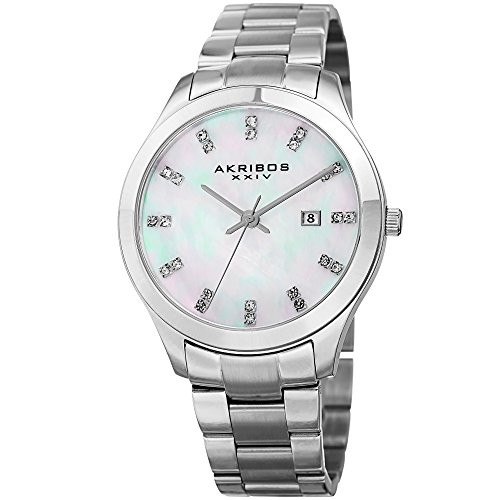 -. Title : Akribos XXIV Women's Silver-Tone Case with Genuine Swarovski Crystals and White Mother-of-Pearl Dial on Silver-Tone Stainless Steel Bracelet Watch AK954SS