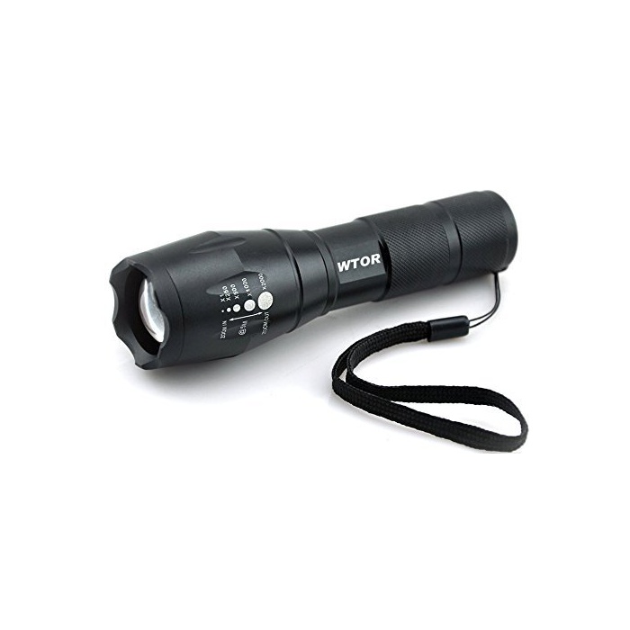 WTOR LED 회중전등 라이트 핸디 라이트 고휘도 줌식5모드 2000LM CREE XM-L T6 (블랙)