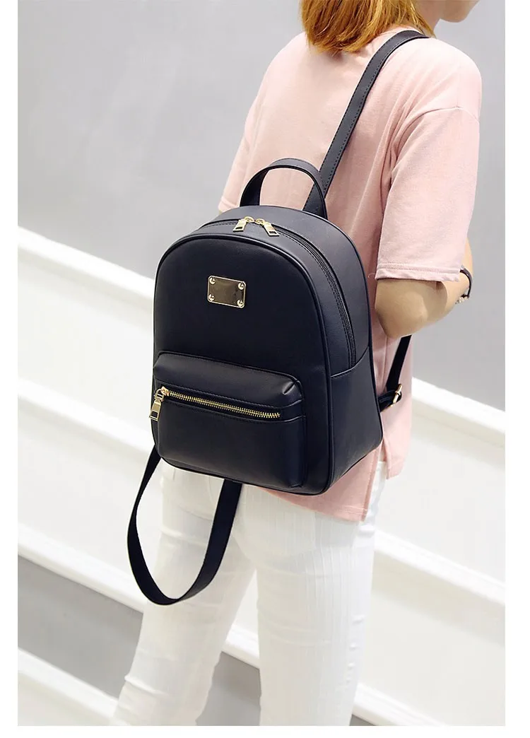 Women Backpack Small Size Black PU Leather Women's Backpacks Fashion School Girls Bags Female Back Pack Famous Brand Softback mochilas