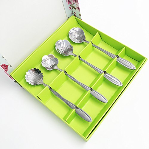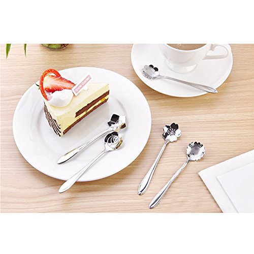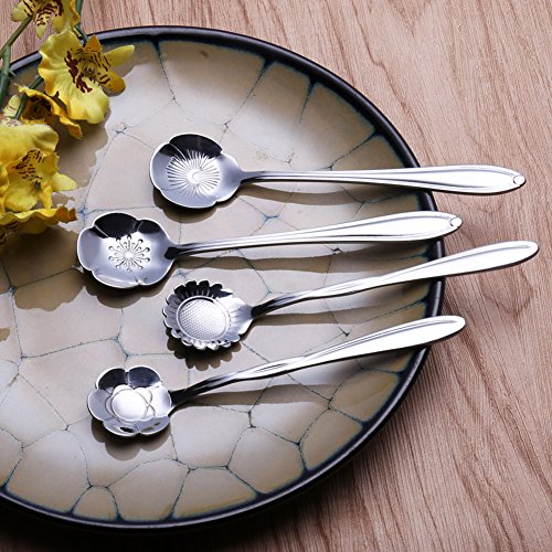 Multi Types of Flower Shape is the most important feature of this style teaspoon, rose, sakura, sunflower, viola tricolor, plum blossom, coreopsis, lotus and bellflower, each flower is different from each other, great spoons to dress up a luncheon or tea party, they can always bring you a feeling of close to nature.