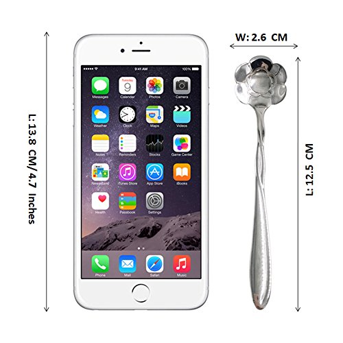 IPhone 6 Length Mini Size They are about 5 inches long, and the flower is about 1 inch around. Just the right size for stirring and spooning sugar into tea as well as eating some delicate dessert. Rounded edge design with the mini size would also be perfect for a child's tea set and daily use.