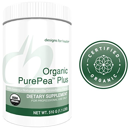 Designs for Health - Organic PurePea Plus, Vanilla Organic Vegan Protein with Greens, Naturally Flavored, 510g, 15 Servings