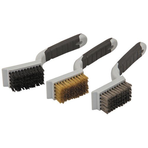 3 Piece Soft Grip Wide Brush Set Brass, Nylon and Stainless Steel Brushes