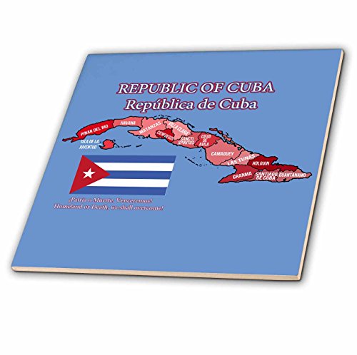 3dRose Map of Cuba with each Province identified with Cuban flag and Motto - Ceramic Tile, 4-inch (ct_202013_1)