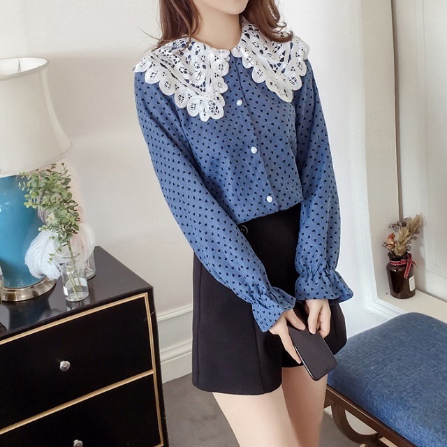 ニットやスウェットとレイヤードでも、1枚でも可愛い万能ブラウスです♪