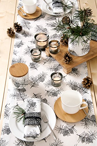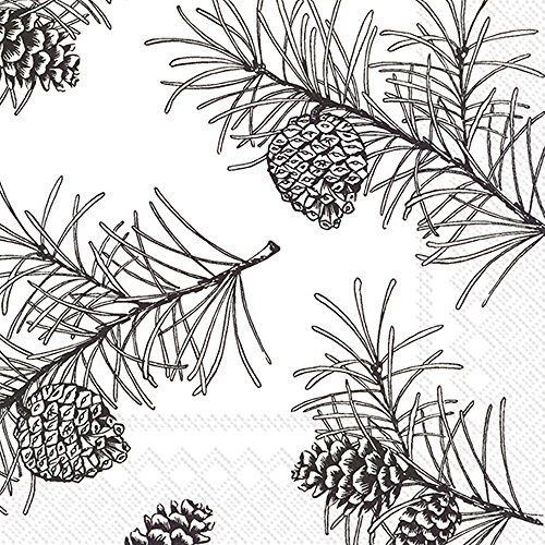 Ideal Home Range L743897 Holiday Luncheon Napkins, Pine Branches-White/Black