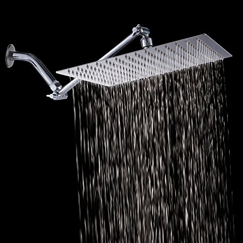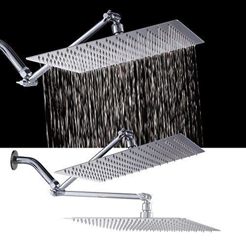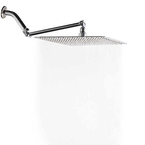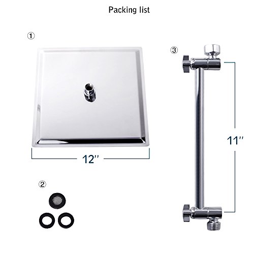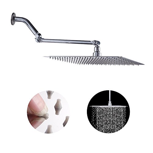 Sarlai Solid Square Ultra Thin 304 Stainless Steel 12 Inch Adjustable Rain Shower Head with Solid Brass 11 Inch Adjustable