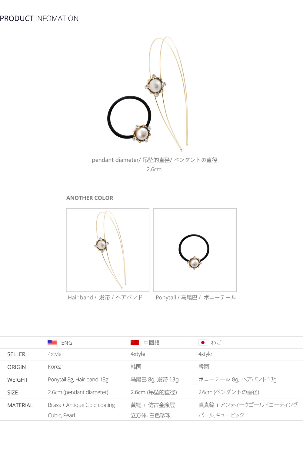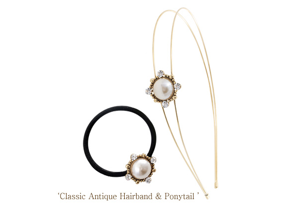 반짝반짝 빛나는 큐빅과 소프트한 진주 장식이 스윗한 감성을 안겨주는 클래식 엔틱 헤어밴드&포니테일 엔틱 골드 컬러를 베이스로 우아하면서 가녀린 분위기를 만들어주는 헤어아이템으로 슬림한 두개의 라인으로 제작된 헤어밴드와 깔끔하게 착용할수 있는 포니테일 두 타입으로 준비했어요. 사랑스러운 분위기로 연출해보세요♡