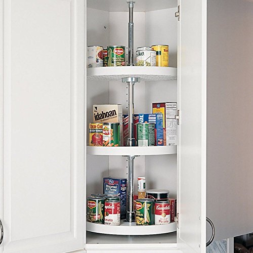 -. Feature : Available in your choice of diameters / 3 shelves with raised edges included / Constructed of durable polymer in choice of colors / For 38- to 46-inch inner cabinet heights / Ideal for canned food, condiments, lids, and dishes