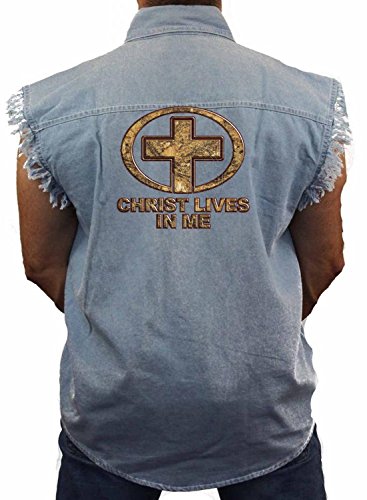 (Juiceclouds)/Men/Outerwear/DIRECT FROM USA/Religious Sleeveless Denim Ves t Chris t Lives In Me M-5XL