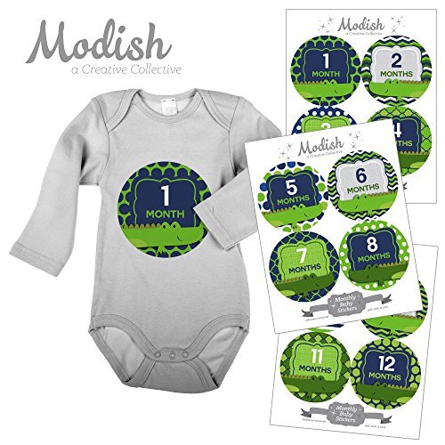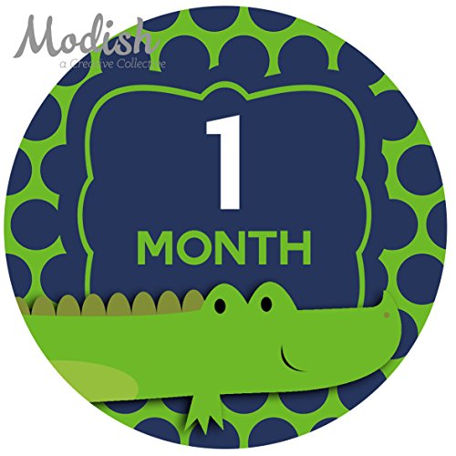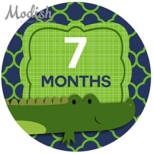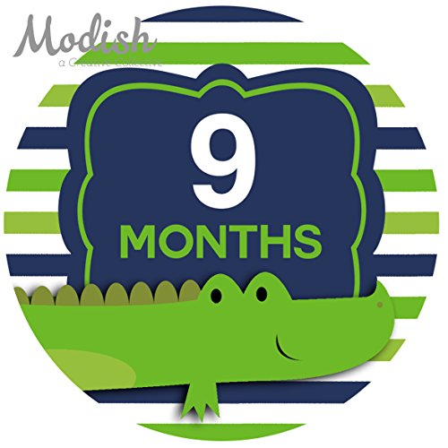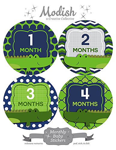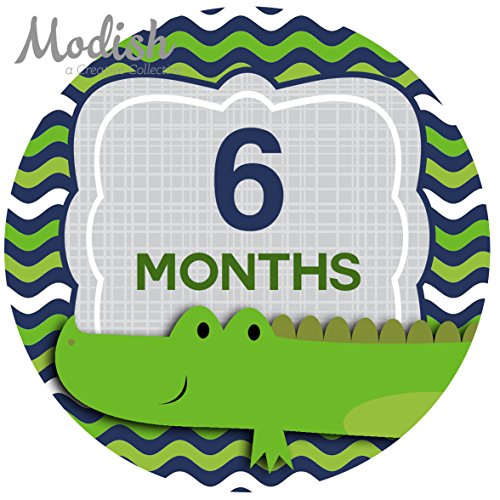 12 Monthly Baby Stickers, Alligators, Boy, Baby Belly Stickers, Monthly Onesie Stickers, First Year Stickers Months 1-12, Blue, Navy Blue, Green, Lime...