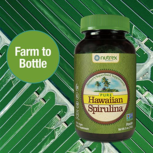 Hawaiian Spirulina is a blue-green microalgae, Arthrospira platenesis, which is grown naturally under the intense Hawaiian sun on the Big Island of Hawaii. It naturally contains protein, iron, beta carotene, minerals, vitamin B12, zeaxanthin, chlorophyll, and phycocyanin. One 3 gram serving has higher levels of some key antioxidants, enzymes, and minerals compared to 5 servings of fruits and vegetables. Ideal for vegans. · Nutrex Hawaii, founded in 1999, is the leading producer of natural microalgae supplements from Hawaii. Farm to Bottle, we control the cultivation, harvest and processing of our Hawaiian Spirulina and BioAstin Hawaiian Astaxanthin microalgae products. We are GMP (Good Manufacturing Practices) third-party certified. All of our products are pesticide and herbicide free, non-GMO, free of gluten, soy, lactose, and preservatives.Feature