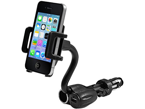 - Feature : Universal fit for most smartphones and small handheld devices / Slide arms to adjust up to 3.5" for universal fitting / Extra USB charging port / DC charging socket