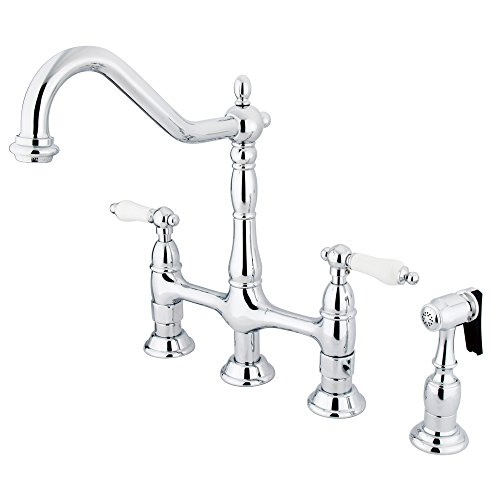 Kingston Brass KS1271PLBS Heritage Kitchen Faucet with Brass Sprayer, 8-3/4-Inch, Polished Chrome