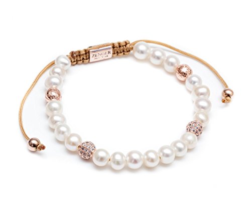 -. Title : ZENGER 18kt Rose Gold Pearl Macrame Bracelet