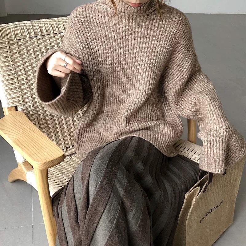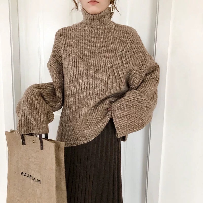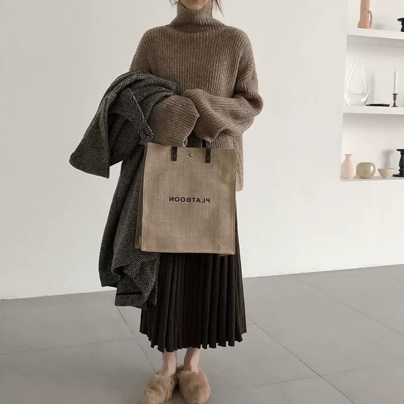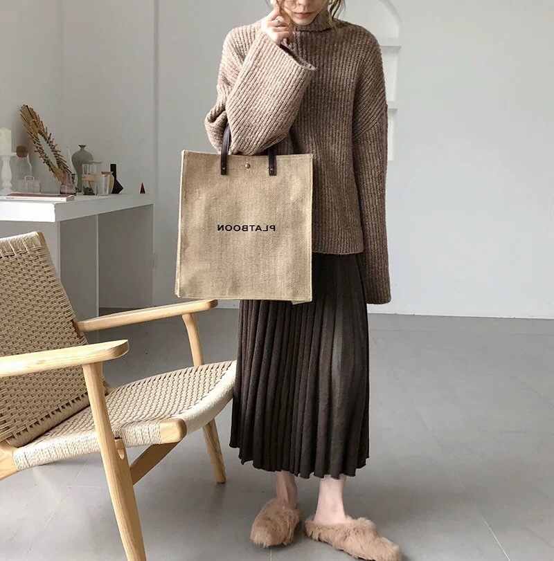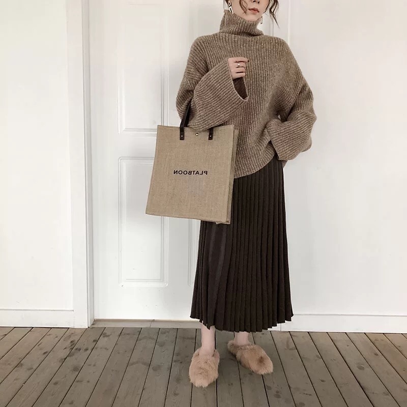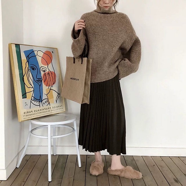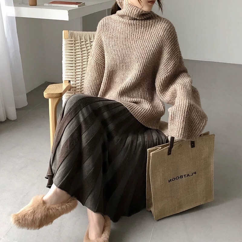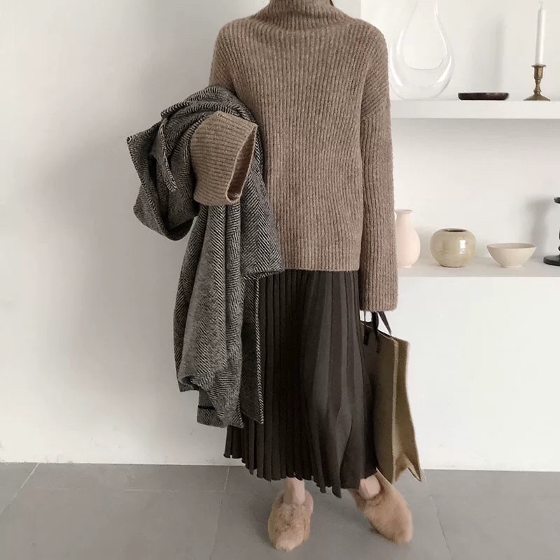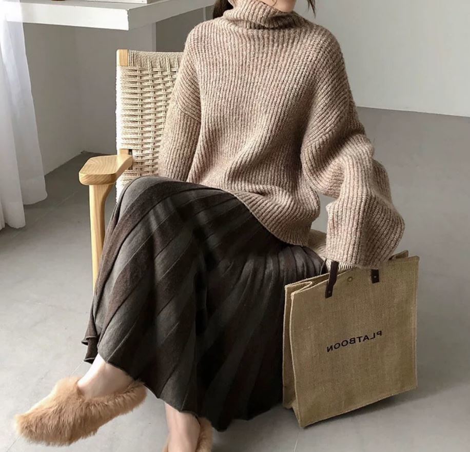 タートルネックニットとプリーツスカートのお得なセットアップ♪