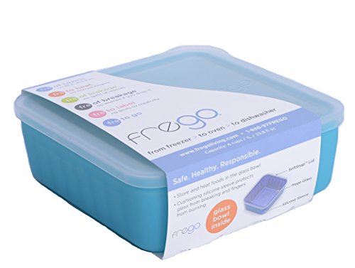 First of its kind in the market, Frego is an innovative BPA-free glass food storage container that transforms the way children and adults store, heat and transport foods. Frego’s innovative and patent-pending design keeps food fresh by storing it in a glass container, which is encased in a cushioning silicone sleeve that not only protects glass from breaking but also protects fingers from burning while heating foods. Frego uses the highest quality materials and is perfect for food storage, preparation and life on the go! Frego offers convenience, portability, durability, easy cleaning and the ability to heat foods without worrying about chemicals from plastics. The double-seal SoftSnap lid prevents spills and protects food from spoiling by creating a virtually airtight seal with both the glass bowl and the silicone sleeve. Patent-pending air-space cushion design reduces heat transfer, protecting hands from potentially painful burns. Grippy silicone won’t slip out of your hands or slide off the table. With the lid on, if you drop it, the air-space cushion design makes Frego virtually spill proof and incredibly break resistant. Frego glass keeps foods fresh and sits snugly inside the silicone sleeve. Heat in the microwave or oven, and with the silicone sleeve, transfer it to the table without worrying about burned fingers or scorched table tops. Manufactured to exacting standards, Frego glass is lead free, break resistant, stain resistant, and exceptionally durable.