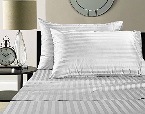 Addy Home Fashions Egyptian Cotton 500 Thread Count Damask Stripe Sheet Set, King - White