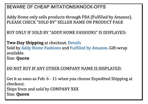 - BEWARE OF CHEAP IMITATIONS: PLEASE ENSURE SELLER NAME is "Addy Home" When you ADD TO CART. Addy Home Products are not distributed internationally so If your order arrives from an overseas shipper please note you did NOT purchase an Addy Home Product. If your order arrives from a domestic location please confirm the order clearly shows Addy Home as the shipper and manufacturer. If it does not, please contact Amazon and us immediately.