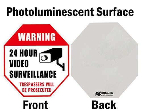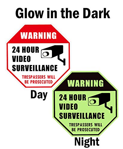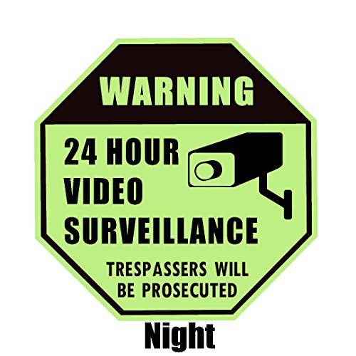 - EYE CATCHING COLOR & DURABLE PLATE: Our security surveillance signs are especially designed to catch people's eyes, its red, black and white combination, with the 12" x 12" octagon 7.2 ounces rust free aluminum plate, any potential criminals just can't miss it! (ONLY 1 SIGN IN EVERY PACKAGE, THE MAIN IMAGE IS A COMPARISON OF THE SIGN DURING THE DAYTIME AND GLOWS AT NIGHT).