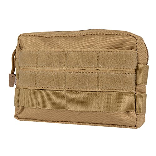 Rugged 600 Denier PVC backed polyester construction provides a strong water resistant pouch for your valuable gear. The MOLLE webbing platform on the back panel features reinforced straps with metal snap closures. Internal pockets allow for additional organization