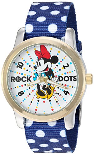 Disney Minnie Mouse Women's Two Tone Alloy Watch, Reversible Blue with White Polka Dot Nylon Strap, W002885