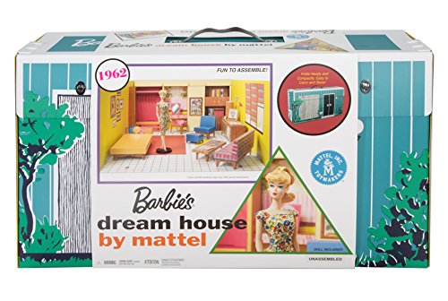 -. Feature : The year is 1962 and Barbie doll has moved into her swell new Dream House / The custom-designed, mid-century modern décor includes a hi-fi stereo and self-assembled slim-line furniture / Barbie is included too, and she's ready to entertain friends or spend a quiet evening relaxing in her living room / Fold the walls and the house neatly stores the furnishings and becomes a portable carry case for on-the-go fun! / Doll included. Assembly required. Colors and decorations may vary