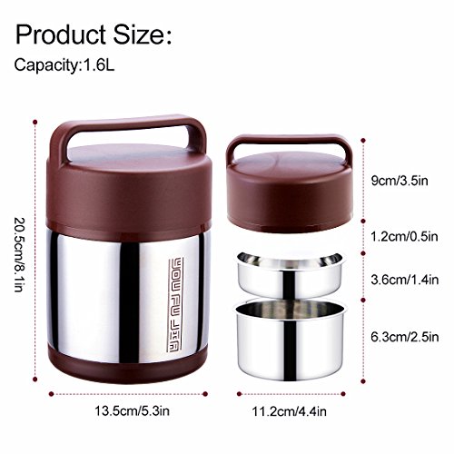Vacuum Insulated Lunch Box Food Carrier Bento Box Thermal Insulating Stainless Steel Lunch Containers Hold Warm for 12 Hours with Folding Spoon, 1.6L