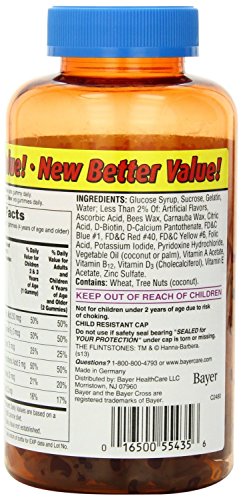 -. Binding : Health and Beauty -. Brand : FLRP9 -. Feature : Complete children's gummy multivitamin; Flintstones is Pediatrician's #1 Choice for Children's chewable vitamins / Support the immune system with Vitamin C, Vitamin E, and Zinc / Aid in the release of energy from food with Vitamin B6, Vitamin B12, Biotin, and Pantothenic Acid / Support healthy eyes with Vitamin A, C, and E / Great tasting fruit flavors and fun character shapes 180 gummies -. Label : Bayer -. Manufacturer : Bayer -. PackageQuantity : 1 -. ProductGroup : Health and Beauty -. ProductTypeName : HEALTH_PERSONAL_CARE -. Publisher : Bayer -. Studio : Bayer -. Title : Flintstones Gummies, 540 Count Pack
