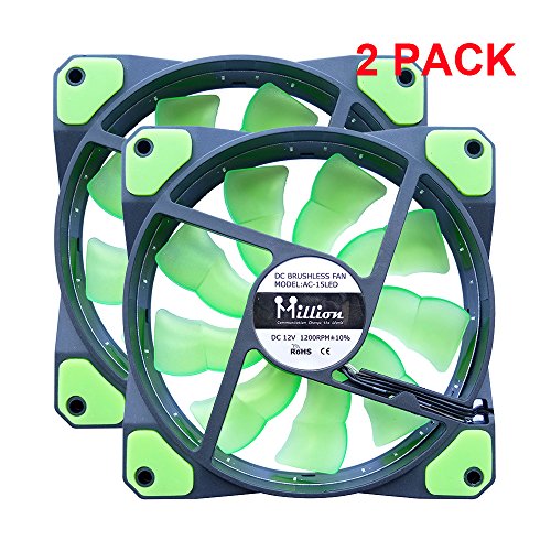 Million 120mm Long Life Sleeve Case 15 PCS LED Silent Fan for Computer Cases, CPU Coolers, and Radiators (Green)- 2 Pack