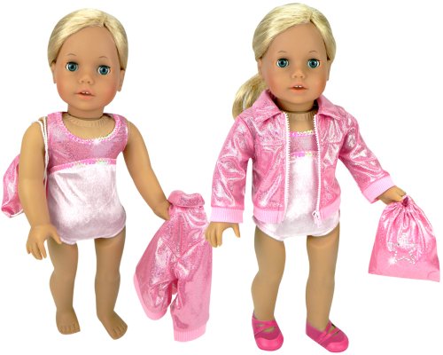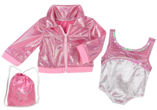 [Description] Doll Clothing for 18 Inch Doll Gymnastics Set Made with High Quality Fabrics/Materials_ Designer Doll Clothes & Affordably Priced! Designed in the USA_ 3 Pc. Set Includes: Gymnastics Leotard with Sequin Trim fits American Girl Dolls_ Madame Alexander_ Sophia``s Dolls & More! Sparkling Zippered Jacket_ Matching Gym Bag with Sparkling Star Design Fits Popular 18 Inch Dolls such as American Girl Dolls_ Gotz_ Madame Alexander_ My Generation_ Gotz & Sophia``s Dolls_ Doll Items for your Favorite Doll Doll & Doll Shoes Not Included. Made by Sophia``s_ Leading Doll Clothes Manufacturer_ Not affiliated with American Girl_ Reg. Trademark of American Girl_ LLC.