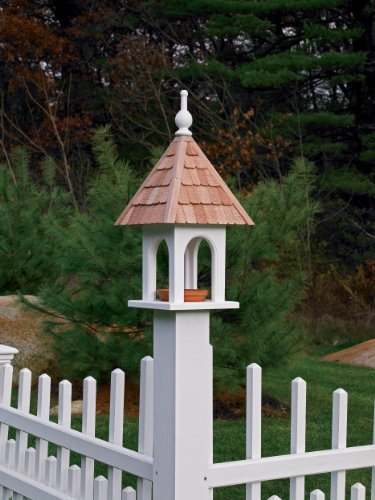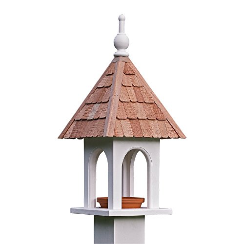Lazy Hill Farm Designs 41550 Loretta Bird Feeder White Solid Cellular Vinyl with Natural Redwood Shingle Roof, 11-Inch by 23-Inch
