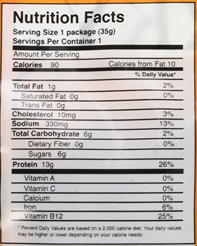 -. Feature : With 13 grams of protein, and only 1 gram of fat, it has significant nutritional, as well as novelty, value. / Each package is 1.25oz (35g)