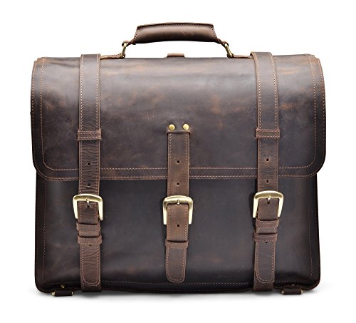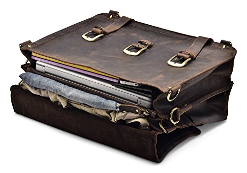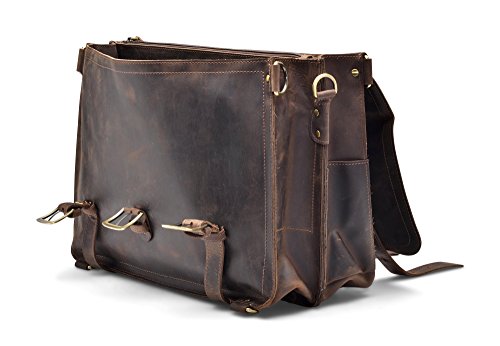 -. Feature : Genuine cow leather treated with Crazy-Horse technique / Solid brass hardware / Adjustable, padded and detachable leather shoulder strap / Electronic compartment for iPad or up to 16" laptop / 1 Back sleeve pocket, 4 pockets for small electronics, 3 compartments, 1 zipper compartment