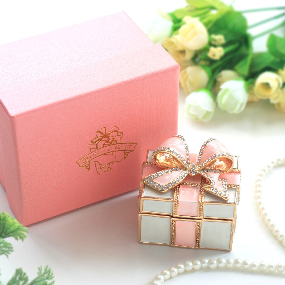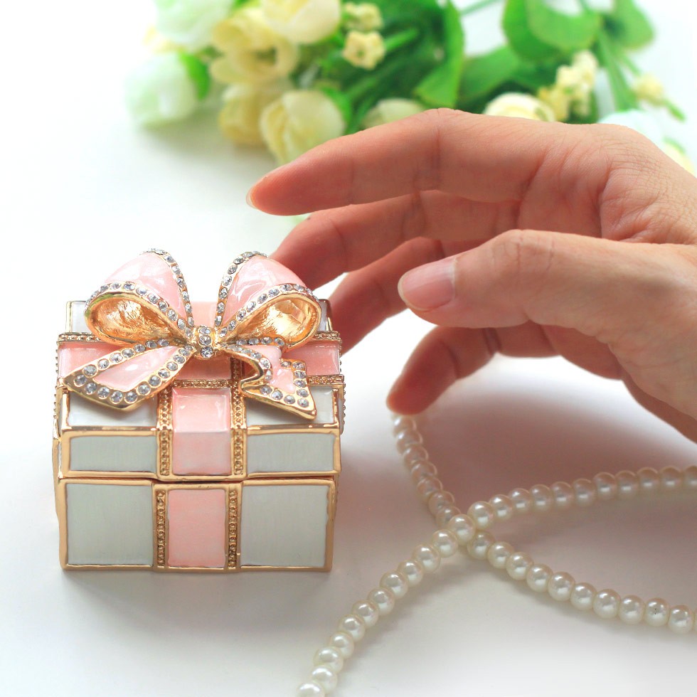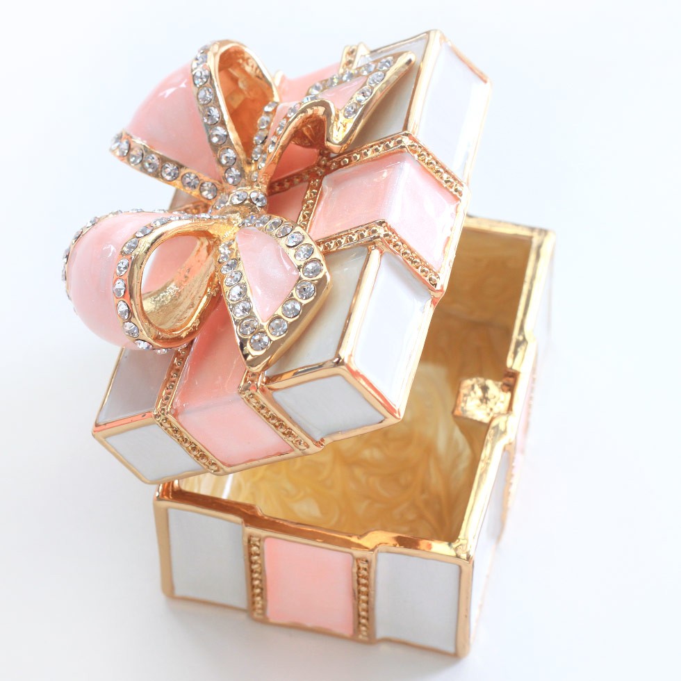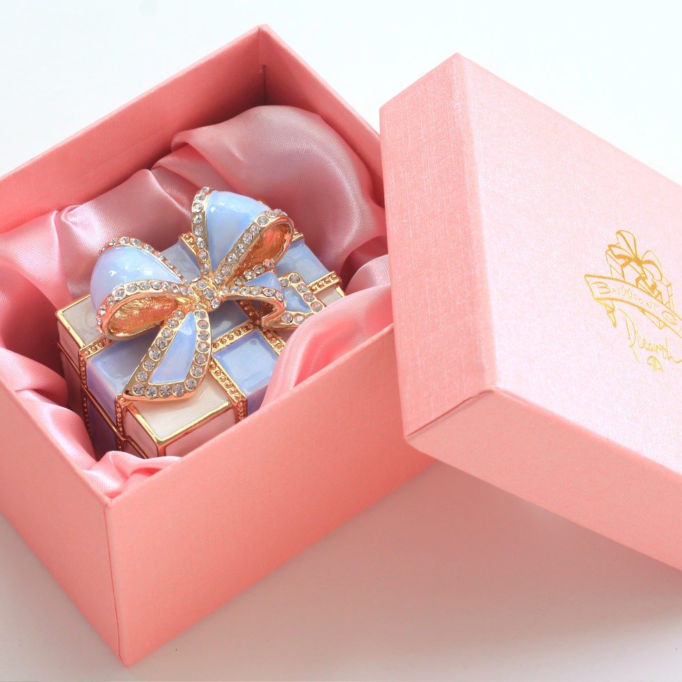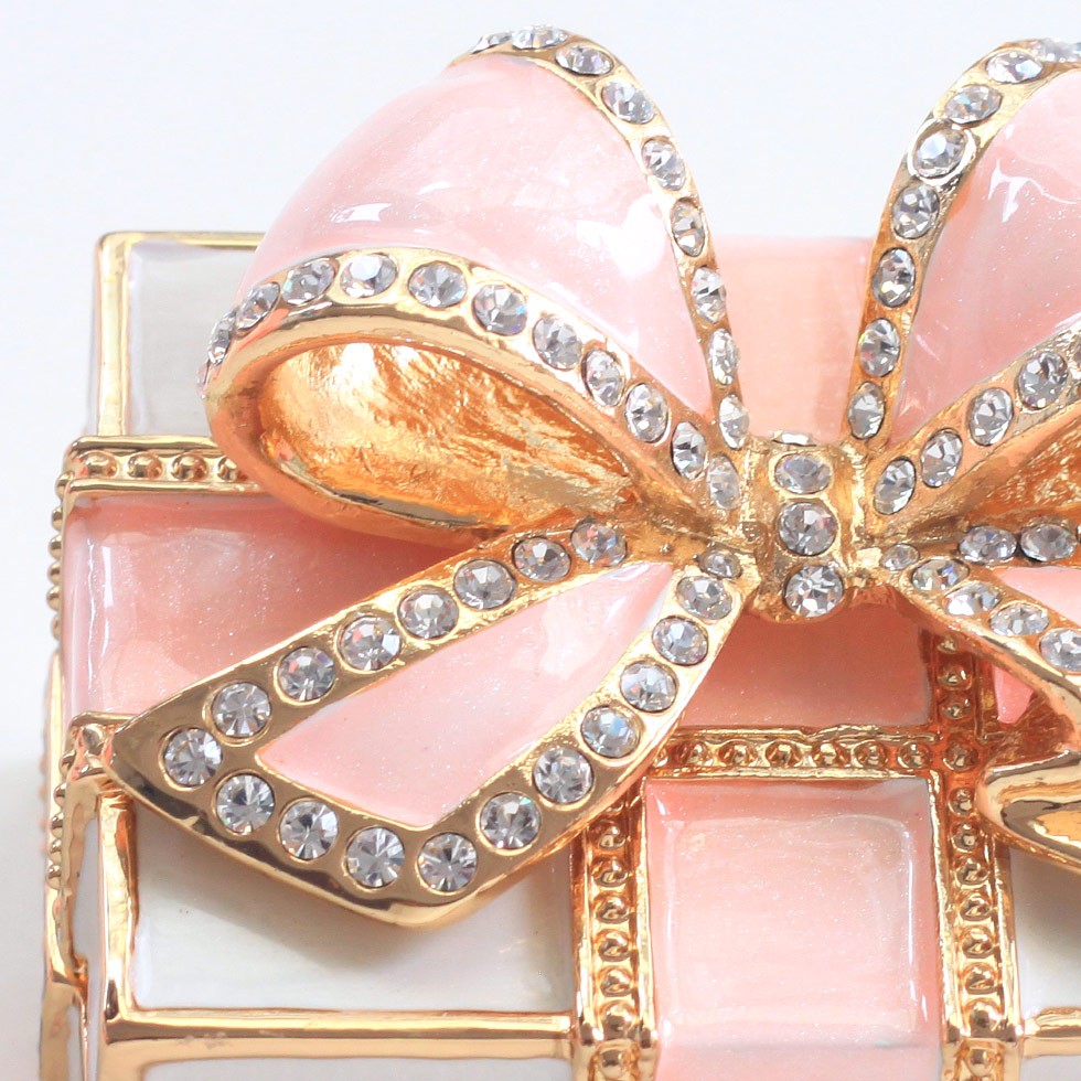 | ジュエリーボックスと言えば、指輪やピアス、ネックレスなどのアクセサリーを入れる引き出し型のケースを思い浮かべる方が多いかもしれません。 ピィアースのジュエリーボックスは、動物や花などをモチーフに作られ、合金製でずっしりとした重さがあります。また高品質のクリスタルガラスを贅沢に使用。まるでジュエリーボックスそのものが宝石のような、高級感溢れる仕上がりです。 小物入れとしても使えるように開閉口には磁石が取り付けてあり、アクセサリーなどなくしやすいアイテムの収納ができます。キラキラと美しく輝く宝石箱は、そのまま飾って楽しめるインテリア雑貨として多くの方に愛されています。 国内トップクラスのジュエリーボックスメーカーであるピィアースは、2004年ごろから本格的に宝石箱の製造を始め、現在のジュエリーボックスはなんと300種類以上。大規模展示会でもご好評いただいており、全国有名百貨店でも販売されています。 自社工場でひとつひとつ丁寧に手作りし、原型作成、研磨、加工、着色、小さなクリスタルガラスの取り付けなども全て手作業で行われるこだわりのハンドメイド品。完成後は厳しい検品の後、丁寧に梱包作業をしお客様にお届けしております。 ピィアース商品は、全国有名百貨店および全国有名宝石店チェーンにてお取り扱いいただいている高品質商品です。 ★自分へのご褒美に…コレクションして並べて飾ると、さらにかわいらしさUP! ★恋人へのプレゼント…中にアクセサリーを入れて、サプライズな贈り物として ★家族への感謝ギフト…お母さんや姉妹へ、日頃のありがとうの気持ちを込めて ★誕生日プレゼント…お友達の喜ぶ顔が見たいから、いつもと違うキラキラギフトを ★小さな女の子へ…まるでお姫様が使っているようなキラキラ宝石箱は女の子の憧れ! |